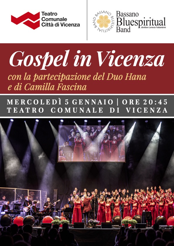 L’energia e l’entusiasmo della storica formazione bassanese gospel-pop avvolgeranno il pubblico in un abbraccio musicale proponendo accanto ai gospel le riletture dei più celebri carols (canti di Natale) in un percorso vocale intessuto di canzoni, che spaziano dal cielo alla terra, per tutte le età, ricco di sorprese, profonde suggestioni e grandi emozioni.